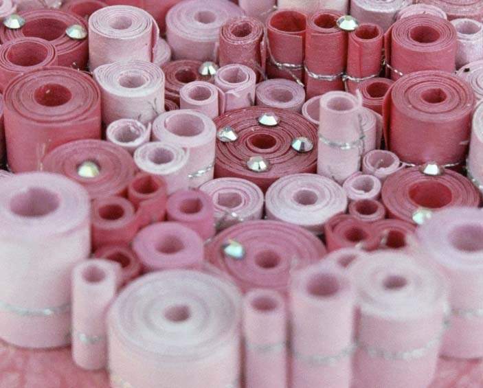 Hand-toned paper, thread and crystals on handmade paper