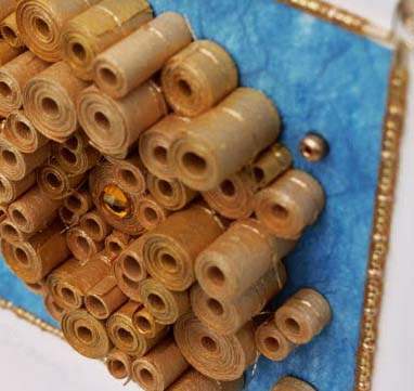 Hand-toned paper, thread, beads, and wire on handmade paper